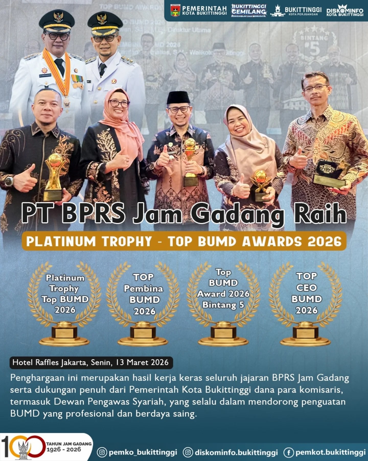 Dengan mengucap syukur Alhamdulillah, dan berkat kerja keras semua elemen baik dari Pemerintah Kota Bukittinggi dan BPRS Jam…